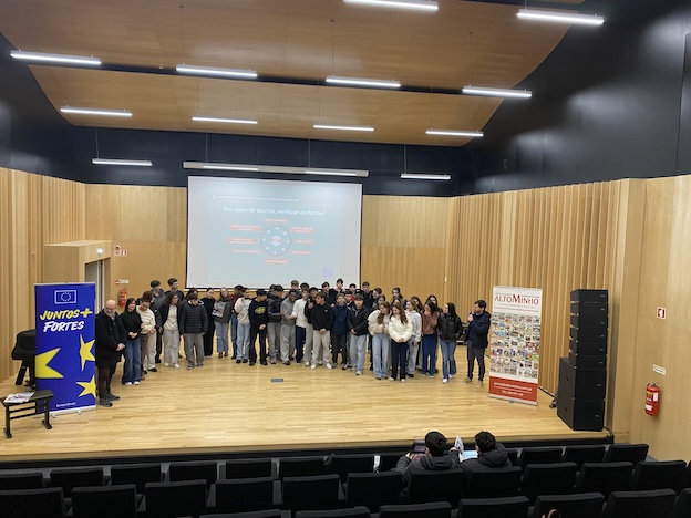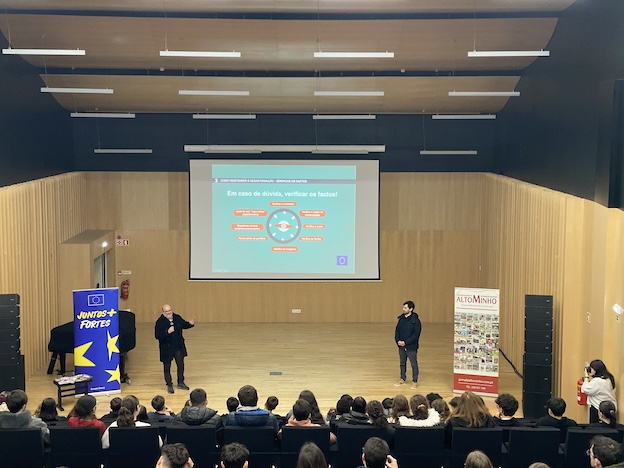 Já em 2024, o Europe Direct Minho dinamizou sessões sobre desinformação em escolas de Caminha, abordando questões como a identificação de notícias falsas, os efeitos da desinformação na formação de opiniões e estratégias para verificar a fiabilidade de fontes de informação — com forte participação da comunidade educativa.